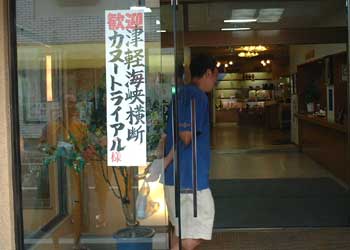 宿泊した旅館には、「歓迎 津軽海峡横断カヌートライアル」の文字が。
