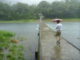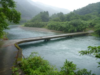 あとは潜水橋(このあたりでは沈下橋をこう呼ぶ)が危ない。ここは水位次第で下をくぐれるかが変わる。