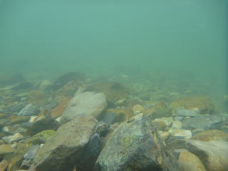 天気がよくなくて、日が差しにくい状況でも川の底が見えます。