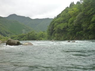 下見のできない瀬がありました。写真左は下流から見上げた図。