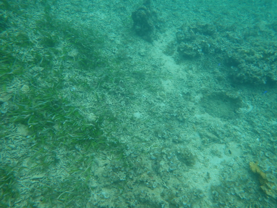 下は水深2mのサンゴ礁である。長くかけていると切られる。