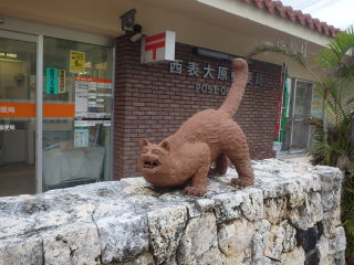 レンタカー屋の向かいが郵便局。イリオモテヤマネコがお出迎え。