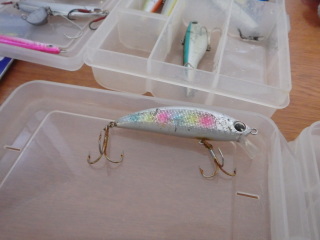 起きてから。ホテルの部屋でルアーを拭いて乾かす。