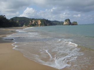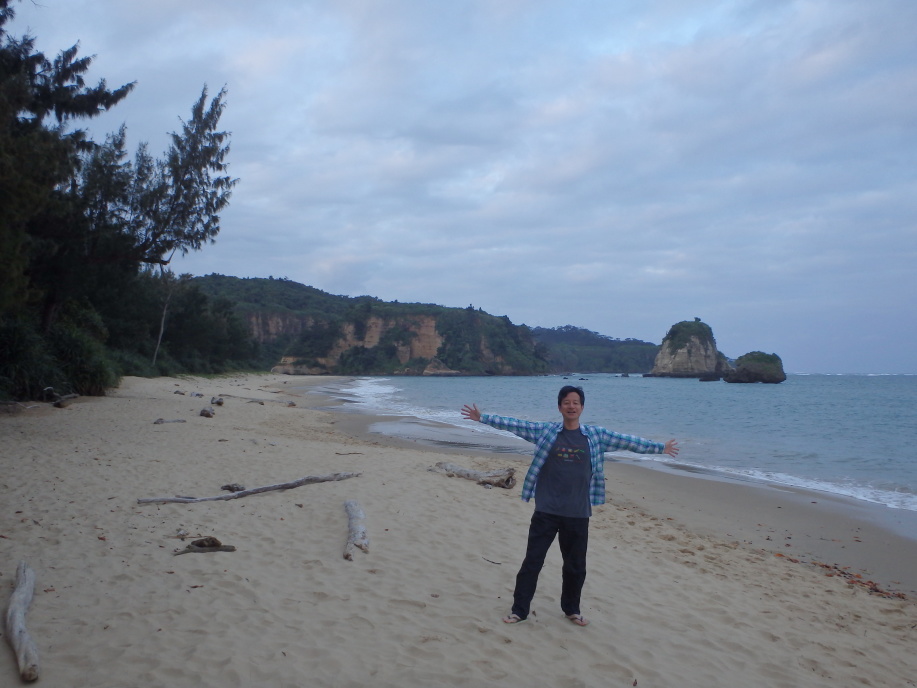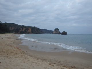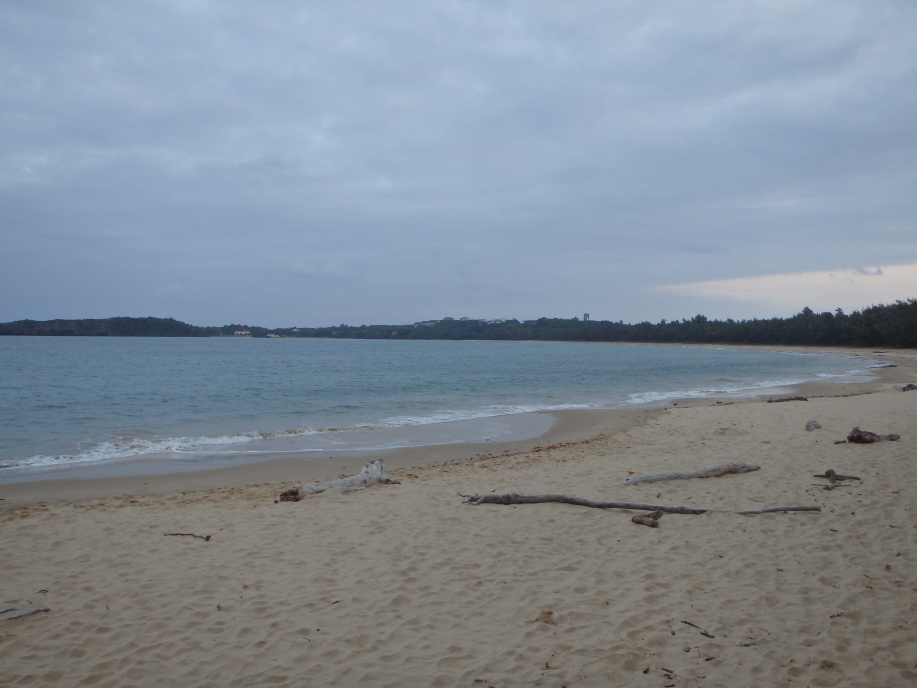 日の出が7時ごろ。朝食前に浜に出る。本日はちょっと曇り。