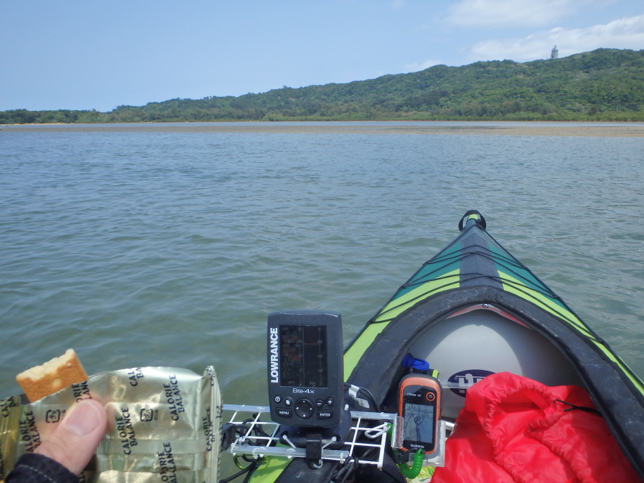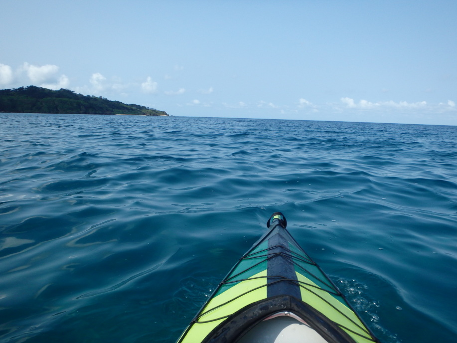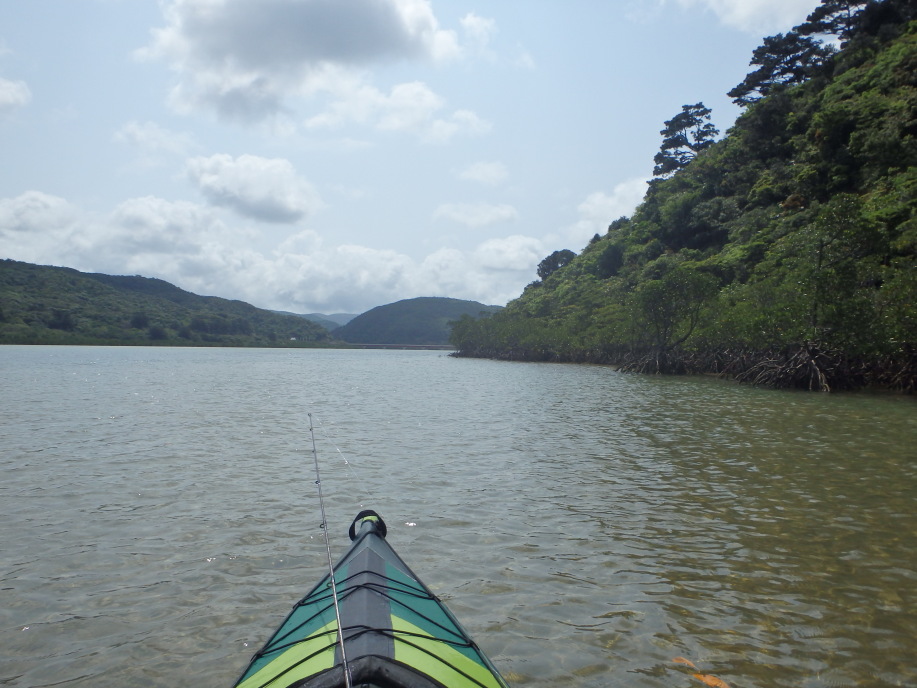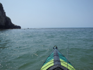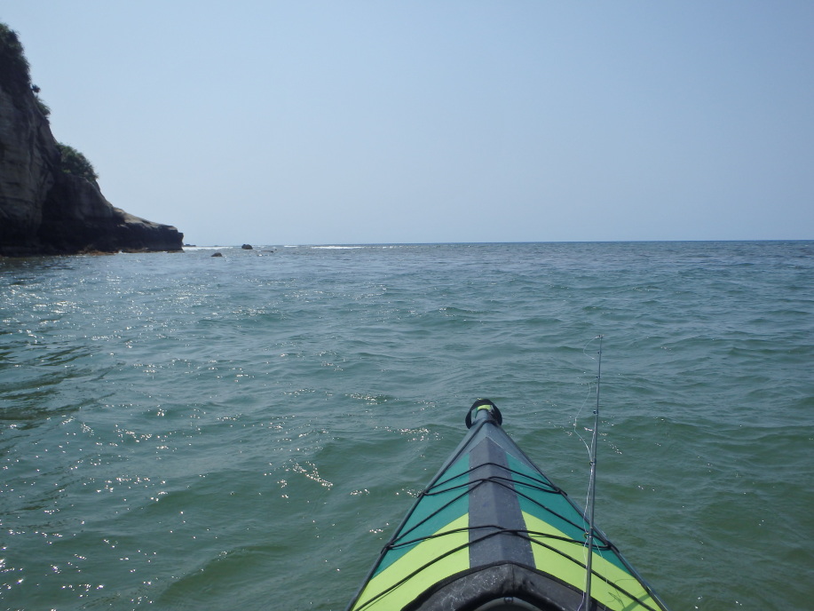 岬のそばでがんばってみましたが、なかなか水深の深いところまで出られず。