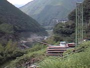 さっき、車で立ち寄った、筏くだりのレリーフがある休憩所がはるか高いところに見えていた。それ以外に人工物は見えない。休憩所も、はるか遠いところにあった。