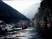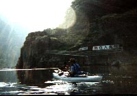 まさに絶景である。こんなところはなかなかカヌーでは下れない。両岸の絶壁が水際までせり出してきてこの一部分だけ見れば海のような景色である。