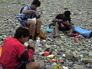 かくて、沈の時にぷうさんはバドワイザー2本、シュノーケル1セットを流して、バドワイザーのみ救出。シュノーケルは沈んでしまったらしい。みんなビールは絶対流さないことになっている。既にビールの在庫がないのだ。なお、当のぷうさんによると、このときの状況は「沈」でなくて、「艇から降りた」そうである。まあいいや。