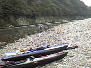 北山川はジェット船が通るので、あまり初心者にはお勧めしない川だと思います。ジェット船が来たら自分の力で逃げないとならないので。でも、川としてはほかの場所にはない、人の気配のない渓谷を行くツアーができて、非常にすばらしい川です。中級レベルのちゃんとジェット船がよけられる人ならジェット船の波がいい退屈しのぎになる、スリリングな川です。