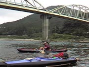 一応瀬なので岸に着けるのもきついと、おもいっきり岸寄りにルートを取って後ろを気にしながら漕ぐ。すぐわきをジェット船が轟音と共に追い抜いていった。