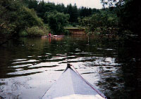塘路湖へ伝わる川は、うっそうとした木が両岸から覆いかぶさってカヌー1艇分の幅しかない川である。かなり気合いをいれてのぞんだのだが、水は水路状態で流れておらず、きつい川の逆あがりではなかった。湖の一部のような川なのだ。