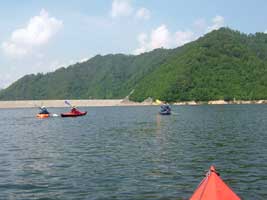 ならまた湖は、ダムのところが細くなっていますが、奥にはいると広い湖面がひろがります。