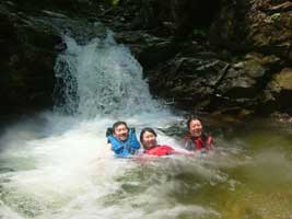 しばらく遡上すると、ちょっとした滝を発見。