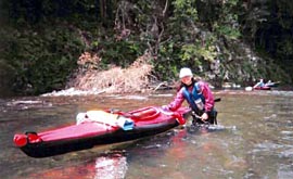 透明で、渓谷の新緑が川面に映って木漏れ日が輝いて、こんな川を下りたい。