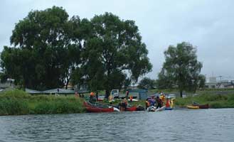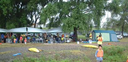 そのあと、雨が降るなか、撤収作業。あれだけたくさんあったカヌーが車に積み込まれるのは、圧巻。