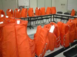 ライフジャケットは濡れていたので、会議室にひろげさせていただきました。