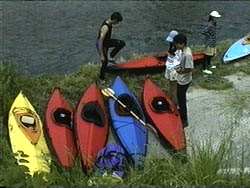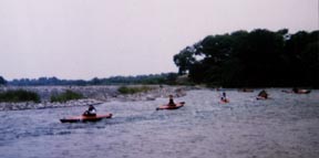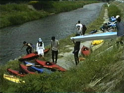 スタート地の風景です。けっこう狭く、流れも速いのでご注意。このときはFODSのオフで行きましたので、かなりの数の艇がでました。ちなみにこのときは「赤のボイジャー360」が大人気でなんと5隻でていました。(写真に写っているでしょ)