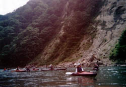 だいぶ下流の断崖絶壁の風景。ここはカヌーライフのコースにはないところです。