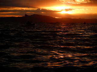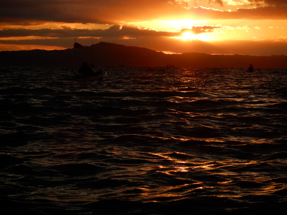 朝日が昇る。朝日の中のカヤックを撮影してみる。