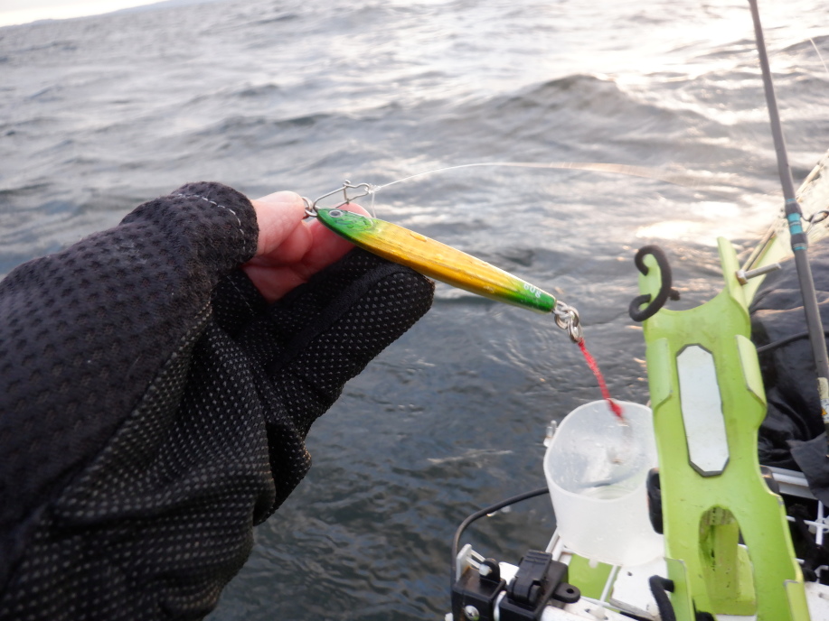 上げてみたら、アシストフックのラインが4本中3本スパっと切れていた。