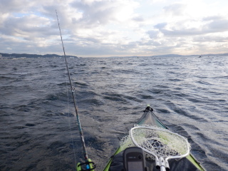 白波も立ってきて、波を乗り越えるカヤックの下をばたんばたんと打つ。