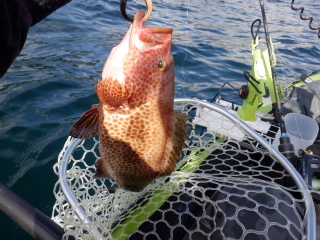 カンパチはネットインしたとたんに針が外れていた。ぎりぎり・・