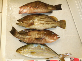 ホウキハタ42センチ、オオモンハタ42センチ、38センチ、カンパチ42センチ。