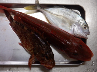 本日の釣果。ホウボウとかロウニンアジとか、面白いのが釣れたけど、