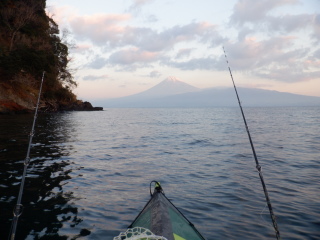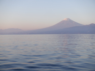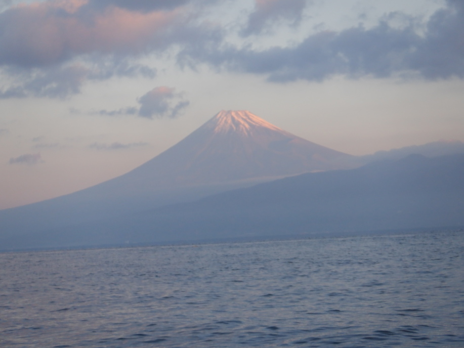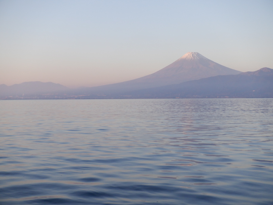 いや、今日もいい天気。風なし、波なし。幸せな朝焼けの富士。