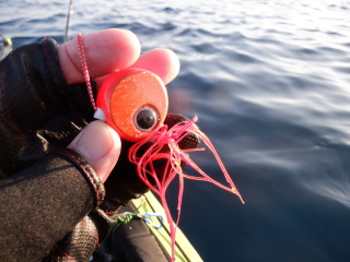 では、と、トレブルフックのついた長いジグに切り替え。