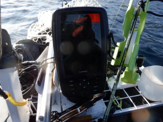 ここで、突然魚群探知機の電源が落ちる。