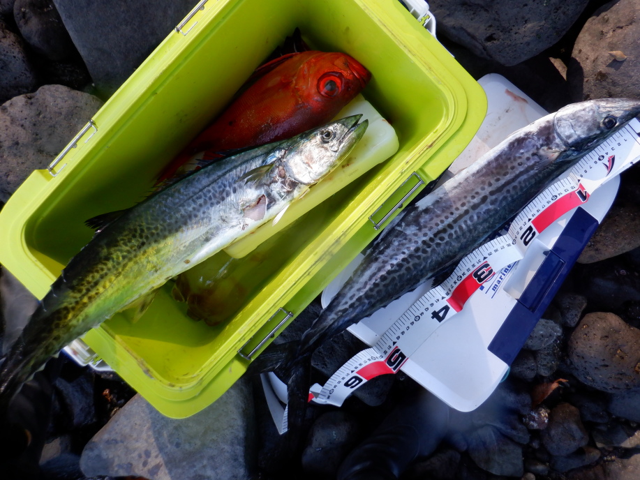 チカメキントキ、サワラ72センチ、66センチ、アカハタ。