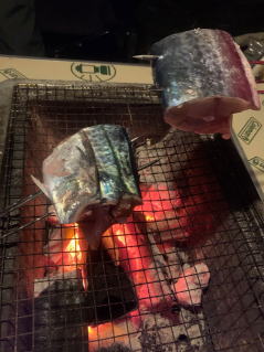サワラはこの夜に炭火焼に。