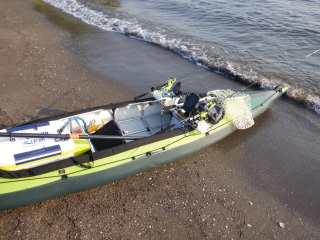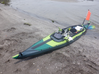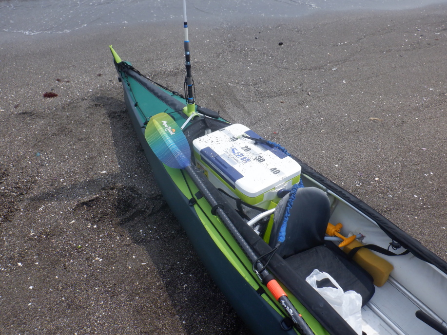 というわけで、陸に直行。かなり漕いで、上陸。