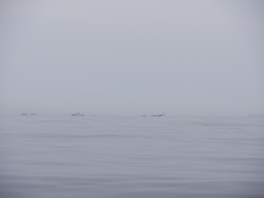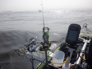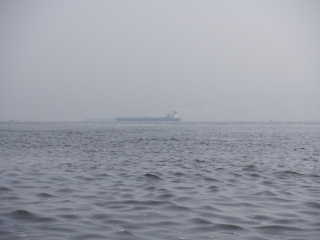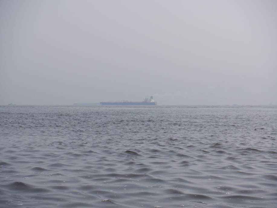 遠くに大きなコンテナ船が数隻、なんて見ている場合ではない。