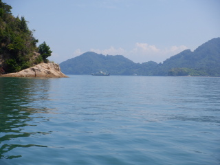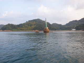 おおきなフェリーとすれ違うために。かなり岸寄りを航行。