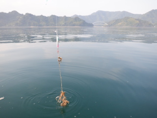 魚群探知機の反応はあるんですが、おっかしいなあ。