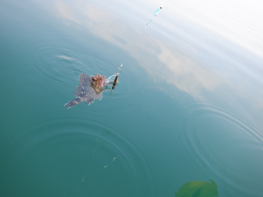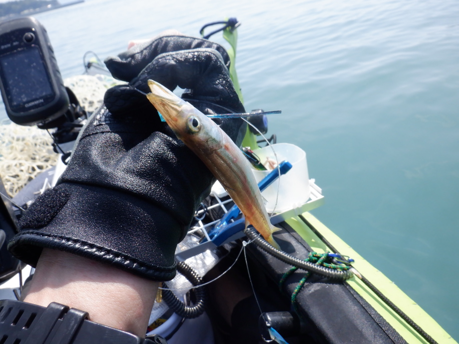 このあと、カマス?が釣れる。小さいんだけどねえ。