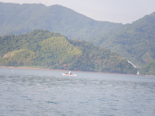 島は島はちょうど道があるあたりで、釣り人がひとり、ふたり、釣りしていた。