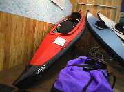 ファルフォークからアルフェックに体制変更になって、残った4艇のうちのひとつ、ボイジャー450Tです。定価が¥230,000から¥219,000になっています。また、カラーも「ブルーサファイア」「サンライズレッド」に変更されています。写真左はカヌーショウで撮影した写真です。色は全体的に落ち着いてきてよかったような。まあ、ブルーは好みの別れるところ。